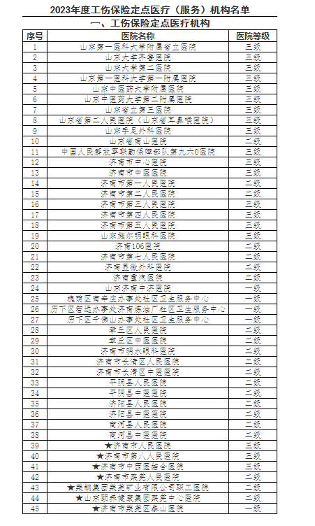 2023年度工傷保險定點醫(yī)療(服務(wù))機構(gòu)名單